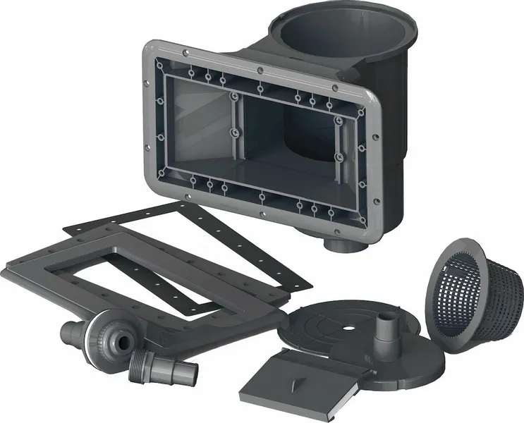 1 inspuiter, 1 skimmer, Bevestigingsmateriaal, Filterzand, Grondzeil, Liner, RVS binnentrap, Composiet buitentrap, Zandfilterset 4 m³/u